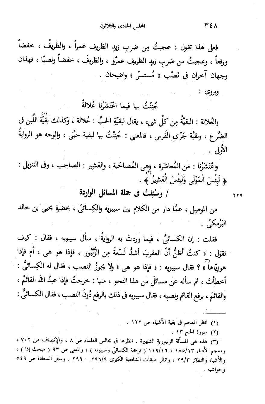 (¬3) هذه هى المسألة الزنبورية الشهيرة. انظرها فى مجالس العلماء ص 8، والإنصاف ص 702، ومعجم الأدباء 13/ 185،16/ 119 (ترجمة الكسائىّ وسيبويه)، والمغنى ص 93 (مبحث إذا)، والأشباه والنظائر 3/ 29، وانظر طبقات الشافعية الكبرى 9/ 296 - 299. وسفر السعادة ص 549 وحواشيه.