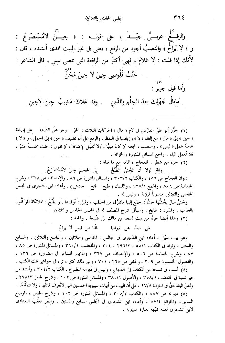 (¬5) ديوانه ص 557، والكتاب 2/ 305، والمسائل المنثورة ص 102، وشرح الجمل، الموضع السابق، والخزانة 4/ 47، وأعاده ابن الشجرى فى المجلس السابع والستين. وانظر تعقّب البغدادى لابن الشجرى لعدم تنبّهه لعبارة سيبويه.