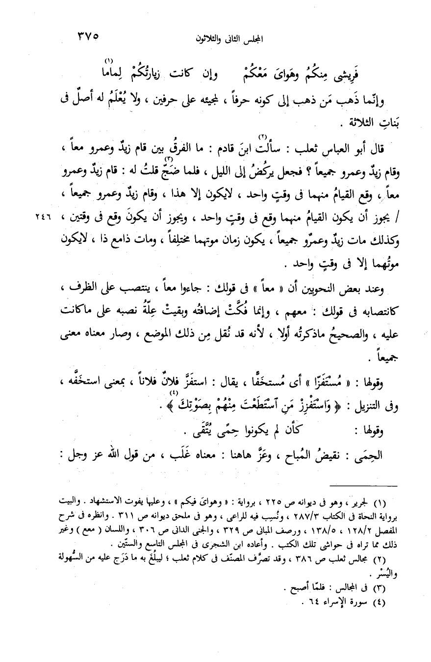 (¬2) مجالس ثعلب ص 386، وقد تصرّف المصنّف فى كلام ثعلب؛ ليبلغ به ما درج عليه من السّهولة واليسر.