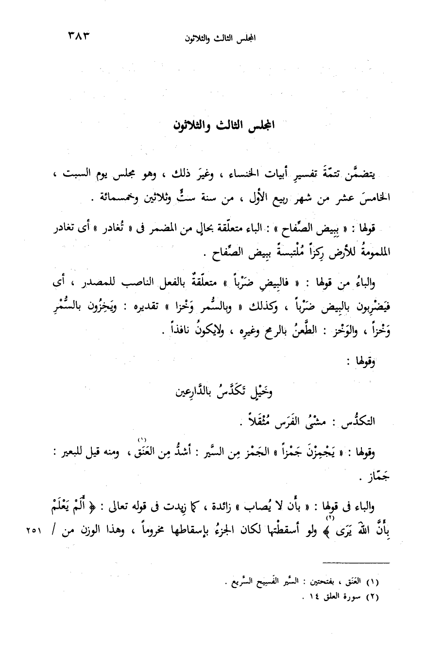 يتضمّن تتمّة تفسير أبيات الخنساء، وغير ذلك، وهو مجلس يوم السبت، الخامس عشر من شهر ربيع الأول، من سنة ستّ وثلاثين وخمسمائة.