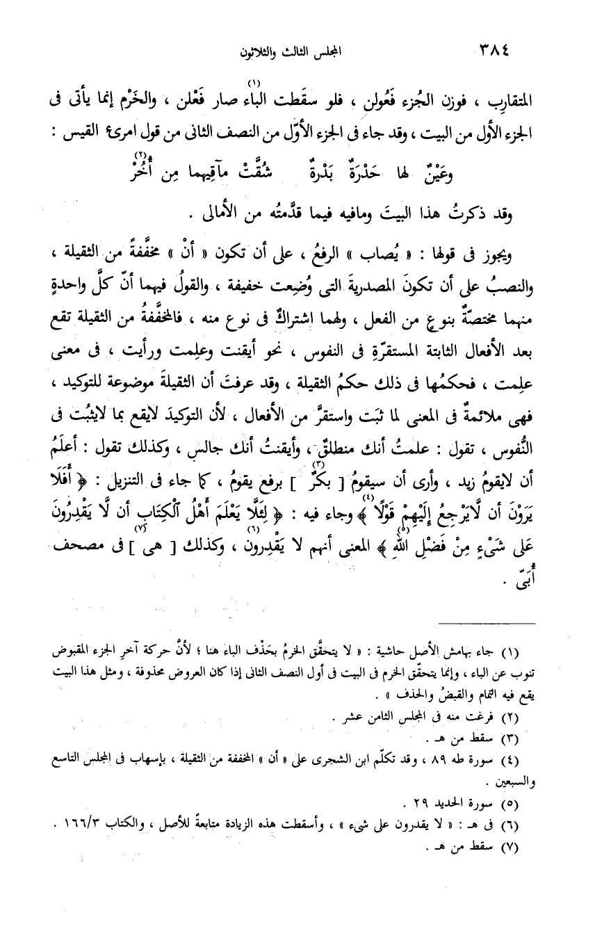 (¬4) سورة طه 89، وقد تكلّم ابن الشجرى على «أن» المخففة من الثقيلة، بإسهاب فى المجلس التاسع والسبعين.