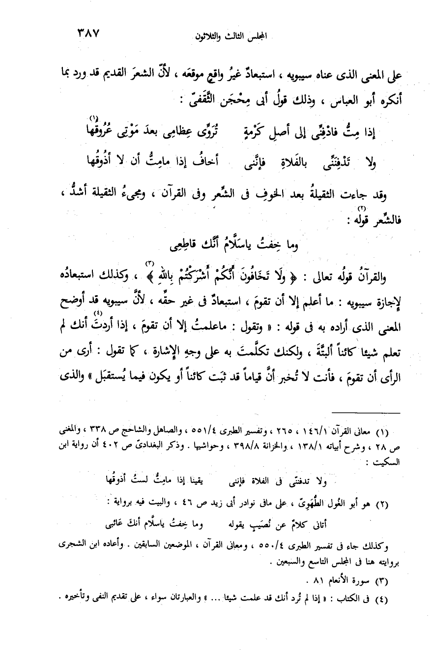 على المعنى الذى عناه سيبويه، استبعاد غير واقع موقعه، لأنّ الشعر القديم قد ورد بما أنكره أبو العباس، وذلك قول أبى محجن الثّقفىّ: