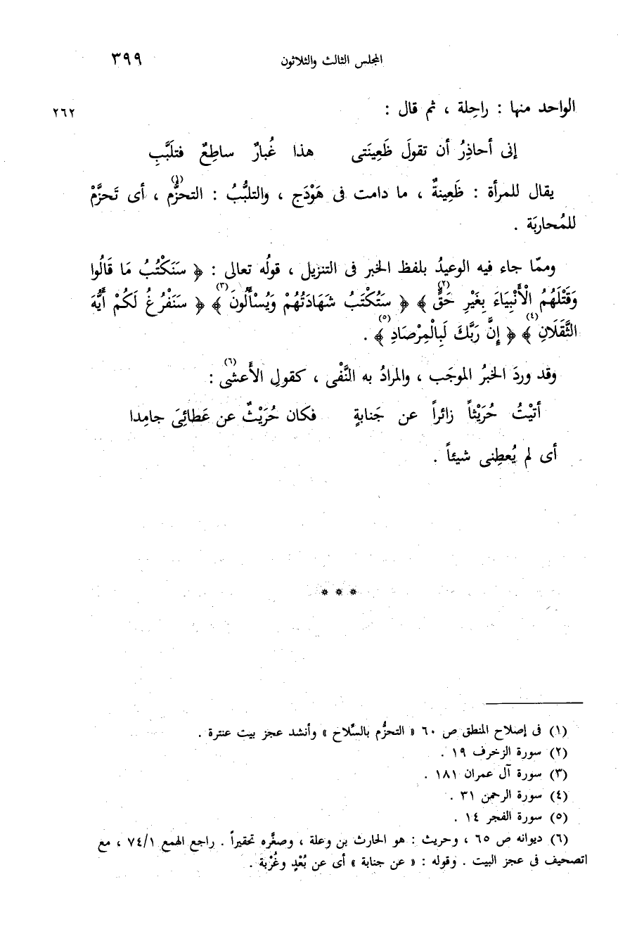 وممّا جاء فيه الوعيد بلفظ الخبر فى التنزيل، قوله تعالى: {سَنَكْتُبُ ما قالُوا وَقَتْلَهُمُ الْأَنْبِياءَ بِغَيْرِ حَقٍّ} (¬2) {سَتُكْتَبُ شَهادَتُهُمْ وَيُسْئَلُونَ} (¬3) {سَنَفْرُغُ لَكُمْ أَيُّهَ الثَّقَلانِ} (¬4) {إِنَّ رَبَّكَ لَبِالْمِرْصادِ} (¬5).