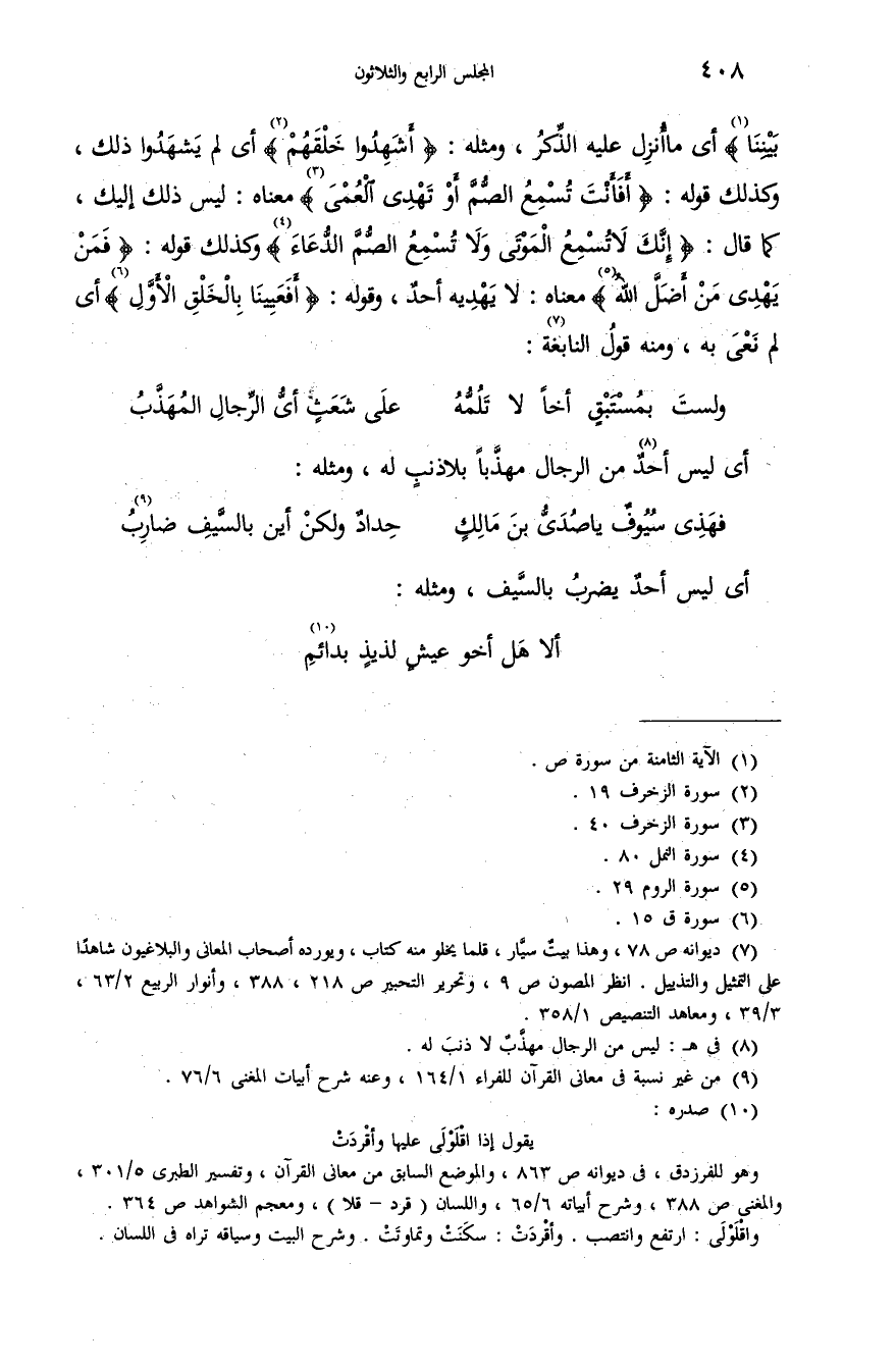 (¬10) صدره: يقول إذا اقلولى عليها وأقردت وهو للفرزدق، فى ديوانه ص 863، والموضع السابق من معانى القرآن، وتفسير الطبرى 5/ 301، والمغنى ص 388، وشرح أبياته 6/ 65، واللسان (قرد-قلا)، ومعجم الشواهد ص 364. واقلولى: ارتفع وانتصب. وأقردت: سكنت وتماوتت. وشرح البيت وسياقه تراه فى اللسان.