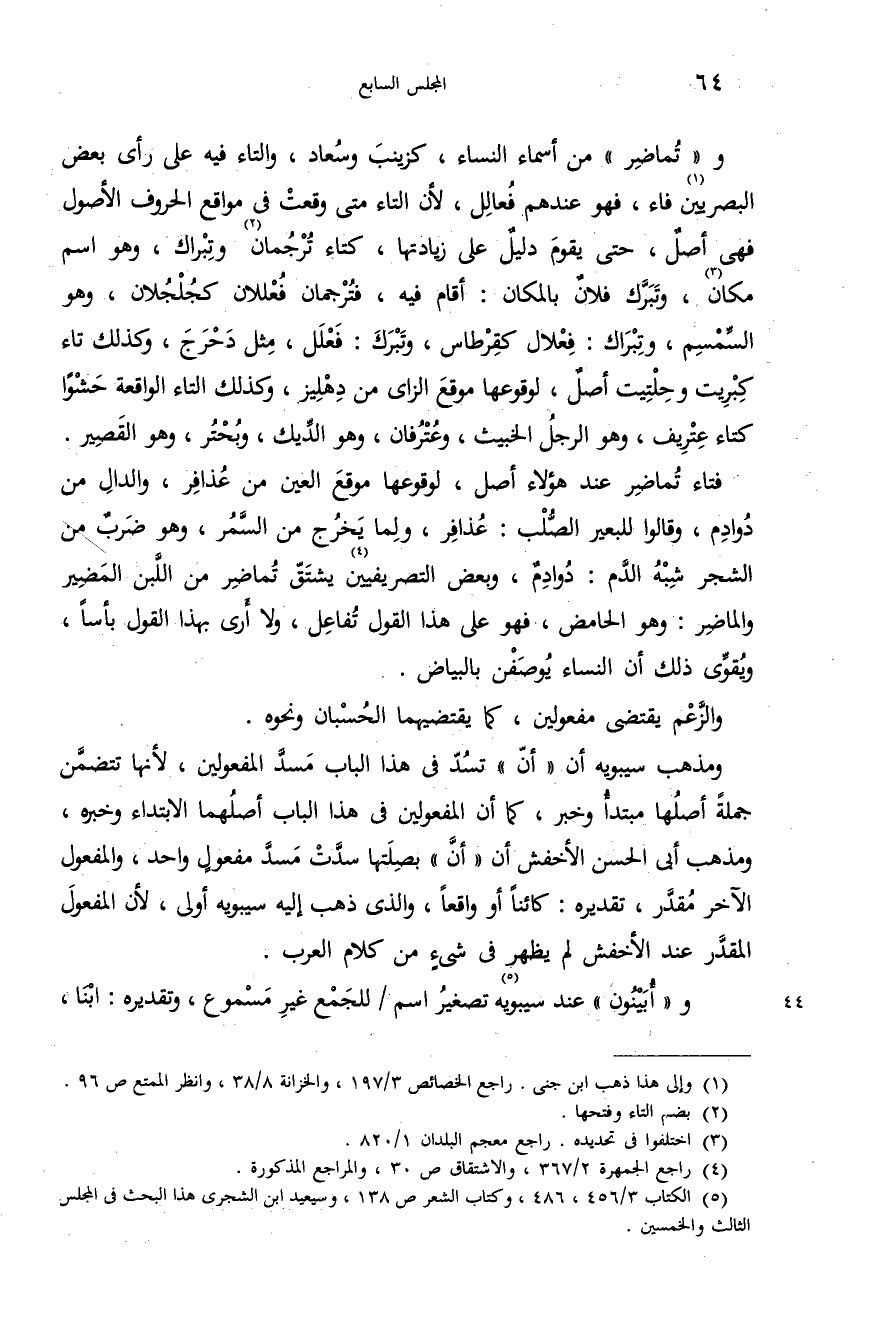 (¬5) الكتاب 3/ 456،486، وكتاب الشعر ص 138، وسيعيد ابن الشجرى هذا البحث فى المجلس الثالث والخمسين.