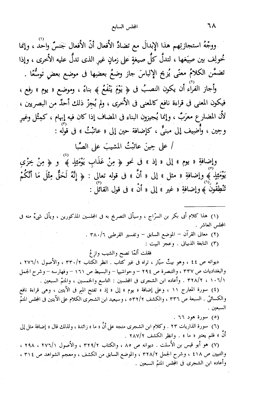 (¬1) هذا كلام أبى بكر بن السرّاج، وسيأتى التصريح به فى المجلسين المذكورين، ويأتى شيء منه فى المجلس العاشر.