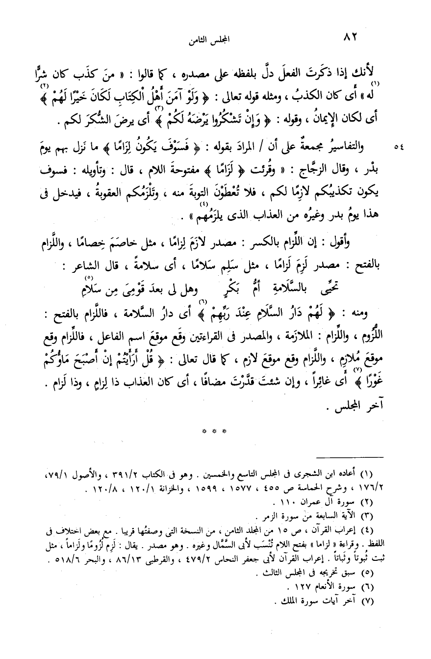 (¬1) أعاده ابن الشجرى فى المجلس التاسع والخمسين. وهو فى الكتاب 2/ 391، والأصول 1/ 79، 2/ 176، وشرح الحماسة ص 455،1577،1599، والخزانة 1/ 120،8/ 120.