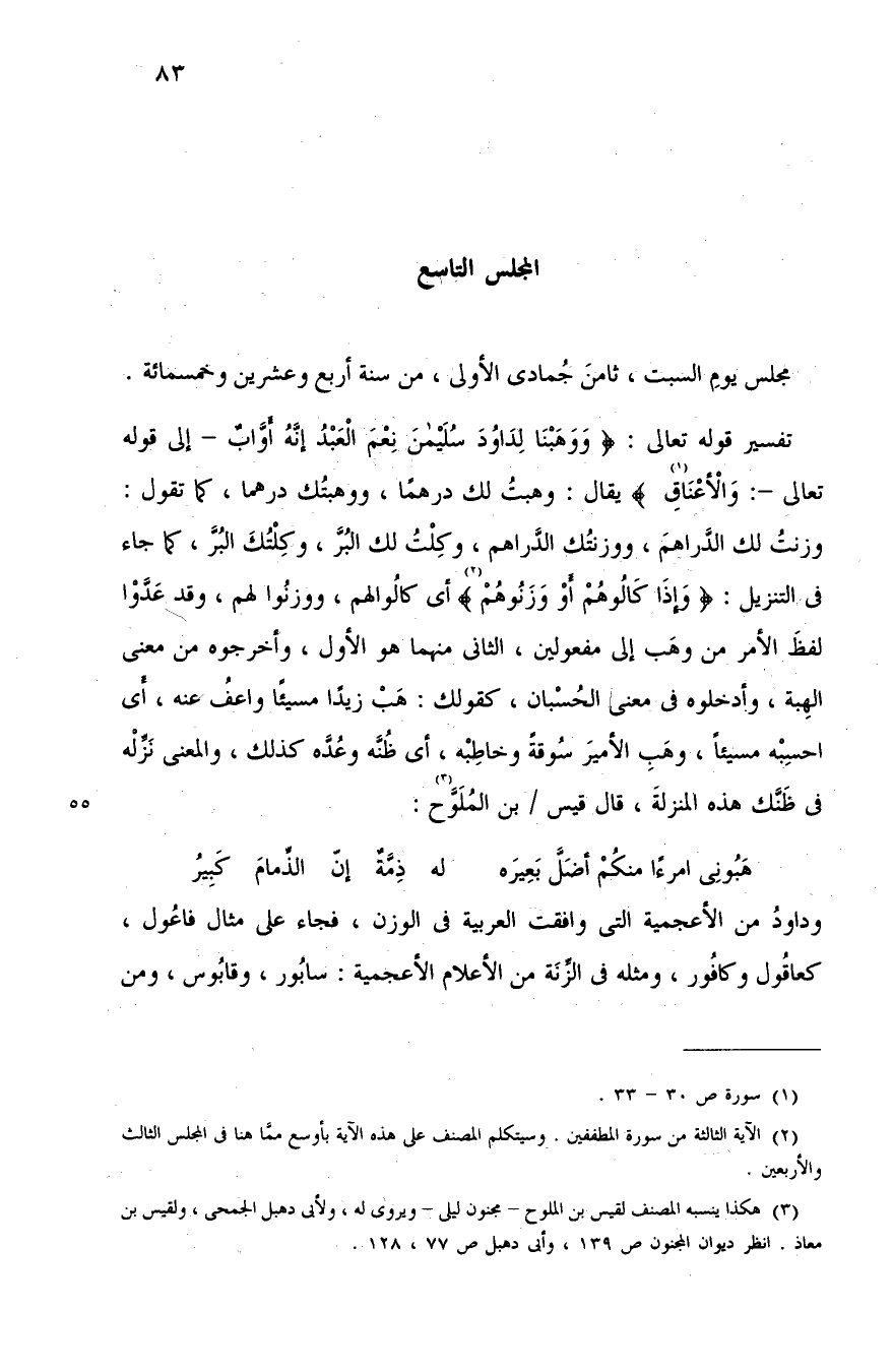 (¬2) الآية الثالثة من سورة المطففين. وسيتكلم المصنف على هذه الآية بأوسع ممّا هنا فى المجلس الثالث والأربعين.