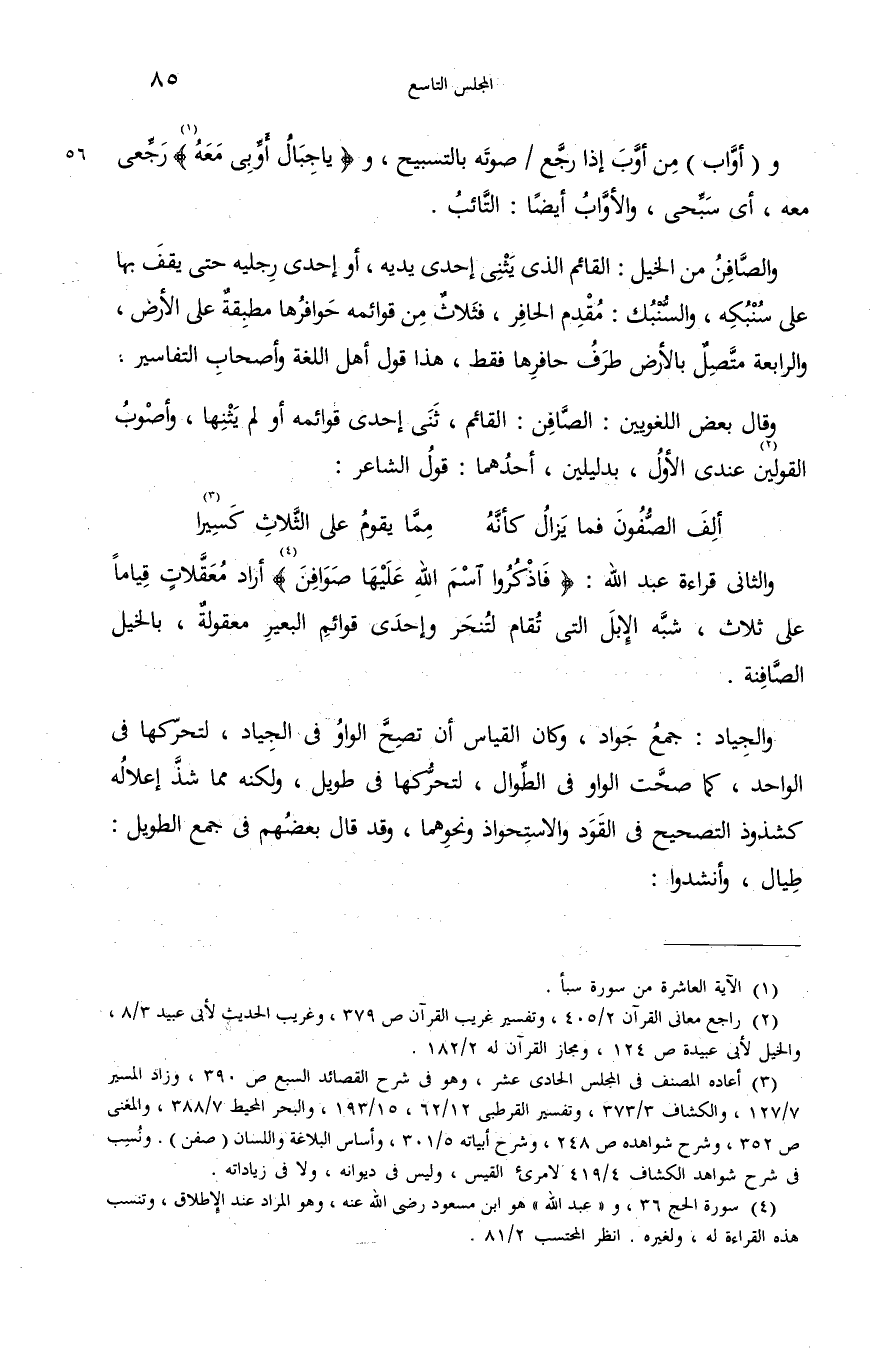 (¬3) أعاده المصنف فى المجلس الحادى عشر، وهو فى شرح القصائد السبع ص 390، وزاد المسير 7/ 127، والكشاف 3/ 373، وتفسير القرطبى 12/ 62،15/ 193، والبحر المحيط 7/ 388، والمغنى ص 352، وشرح شواهده ص 248، وشرح أبياته 5/ 301، وأساس البلاغة واللسان (صفن). ونسب فى شرح شواهد الكشاف 4/ 419 لامرئ القيس، وليس فى ديوانه، ولا فى زياداته.