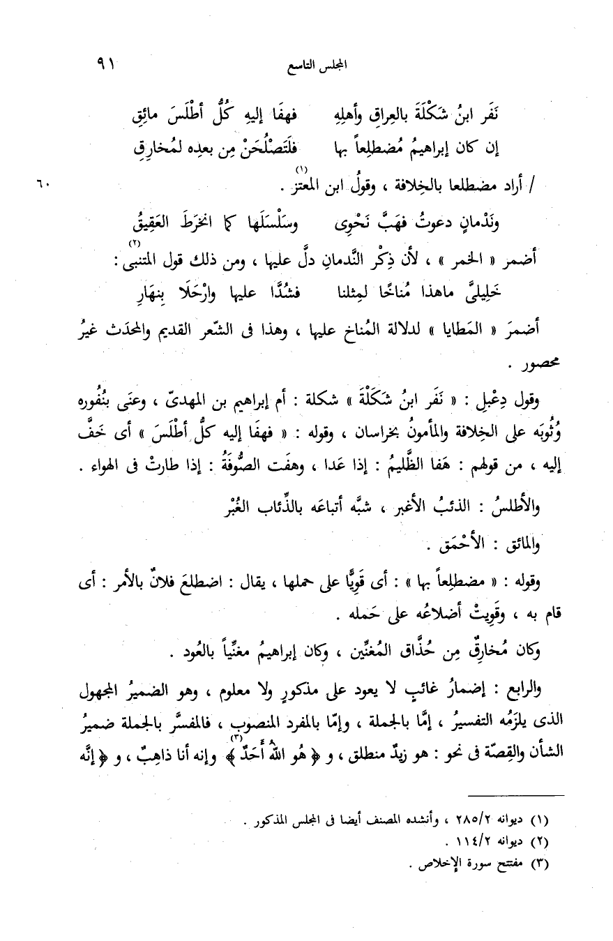 (¬1) ديوانه 2/ 285، وأنشده المصنف أيضا فى المجلس المذكور.