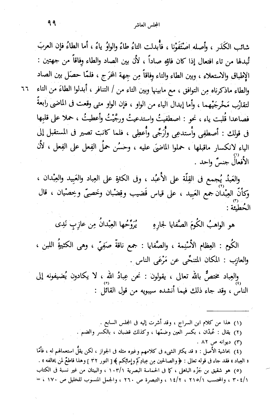 (¬1) هذا من كلام ابن السراج، وقد أشرت إليه فى المجلس السابع.