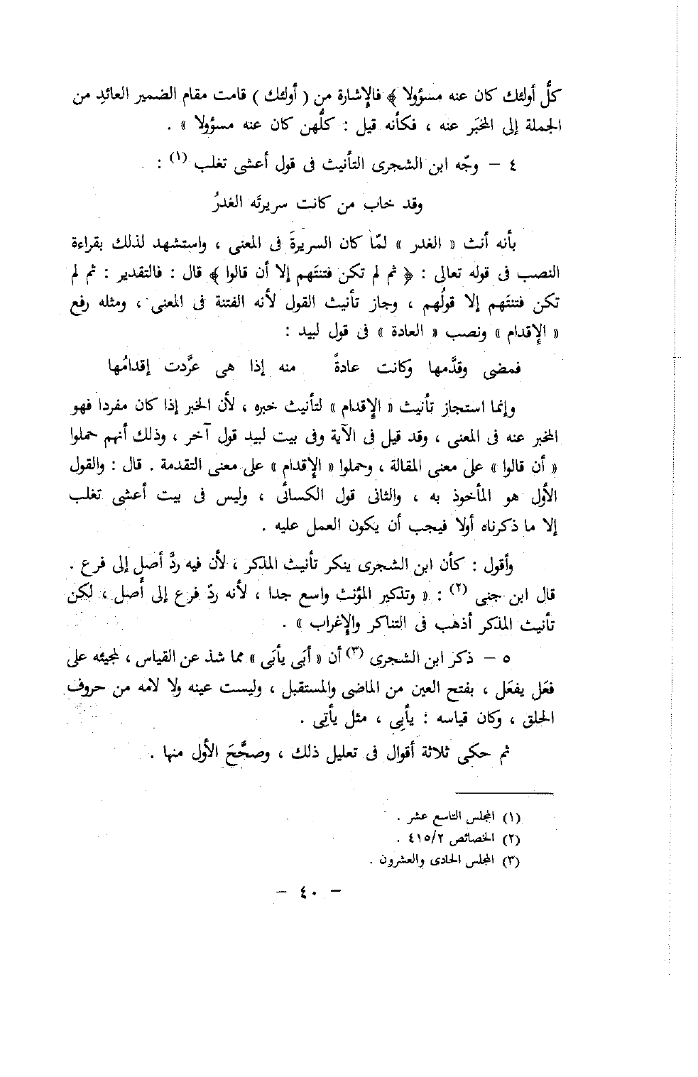 وأقول: كأن ابن الشجرى ينكر تأنيث المذكر، لأن فيه ردّ أصل إلى فرع.
