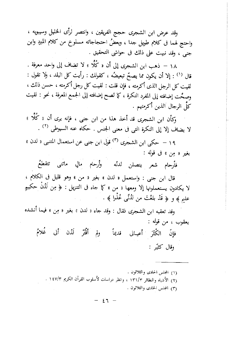 18 - ذهب ابن الشجرى إلى أن «كلاّ» لا تضاف إلى واحد معرفة.