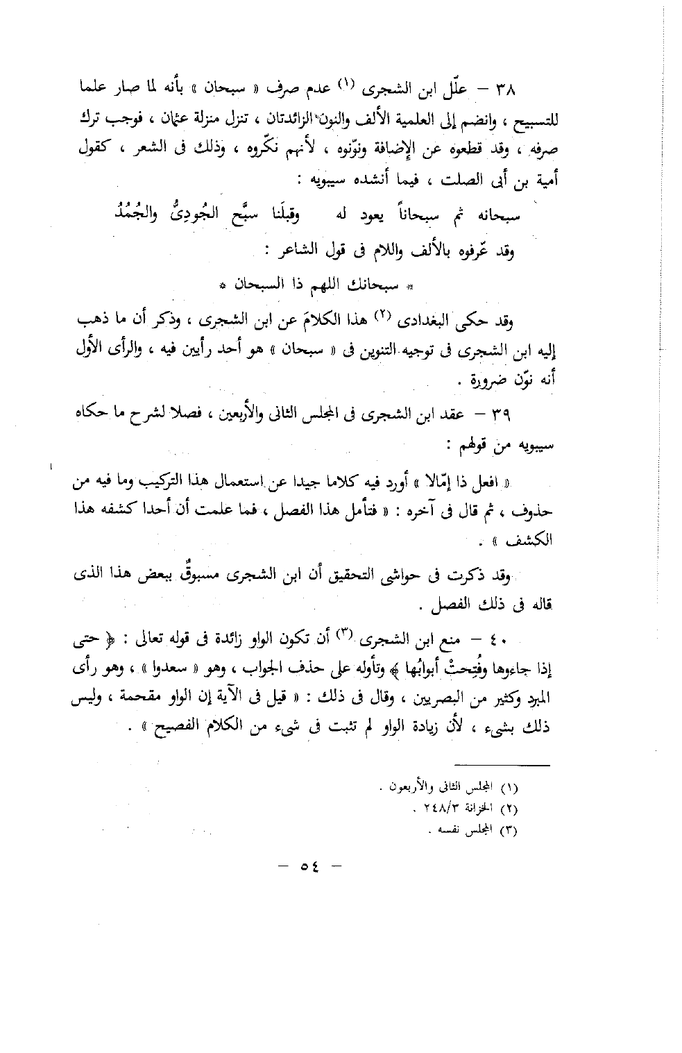 39 - عقد ابن الشجرى فى المجلس الثانى والأربعين، فصلا لشرح ما حكاه سيبويه من قولهم:
