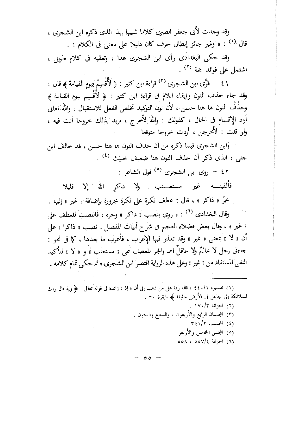 وقد حكى البغدادى رأى ابن الشجرى هذا، وتعقبه فى كلام طويل، اشتمل على فوائد جمة (¬2).
