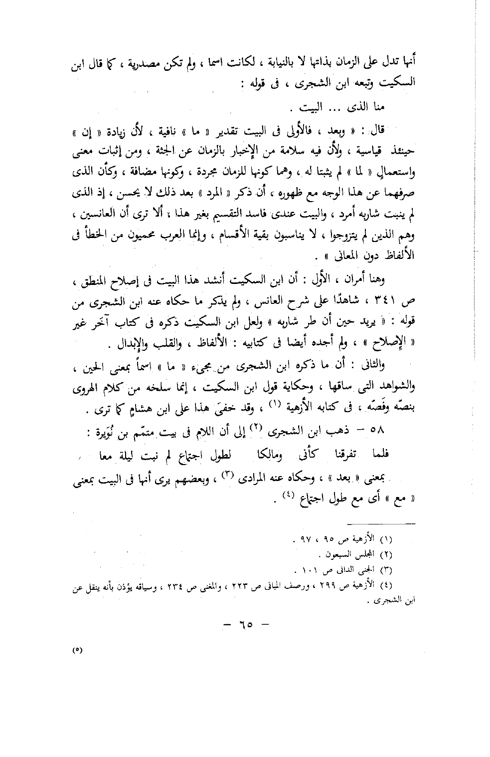 (¬4) الأزهية ص 299، ورصف المبانى ص 223، والمغنى ص 234، وسياقه يؤذن بأنه ينقل عن ابن الشجرى.