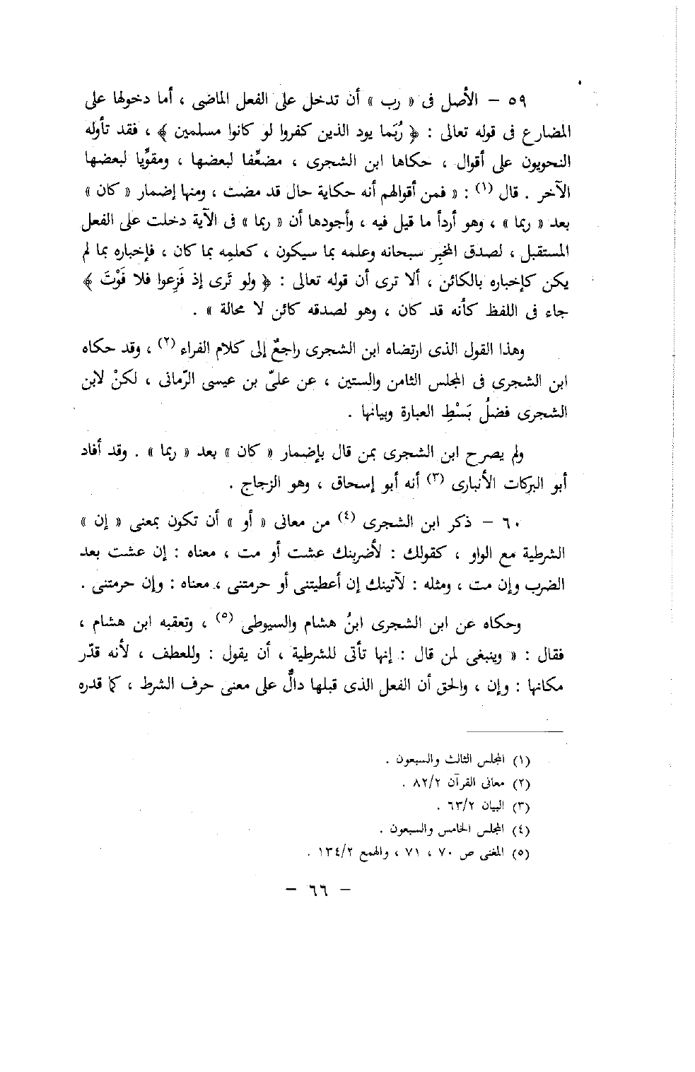 وهذا القول الذى ارتضاه ابن الشجرى راجع إلى كلام الفراء (¬2)، وقد حكاه ابن الشجرى فى المجلس الثامن والستين، عن علىّ بن عيسى الرّمانى، لكن لابن الشجرى فضل بسط العبارة وبيانها.