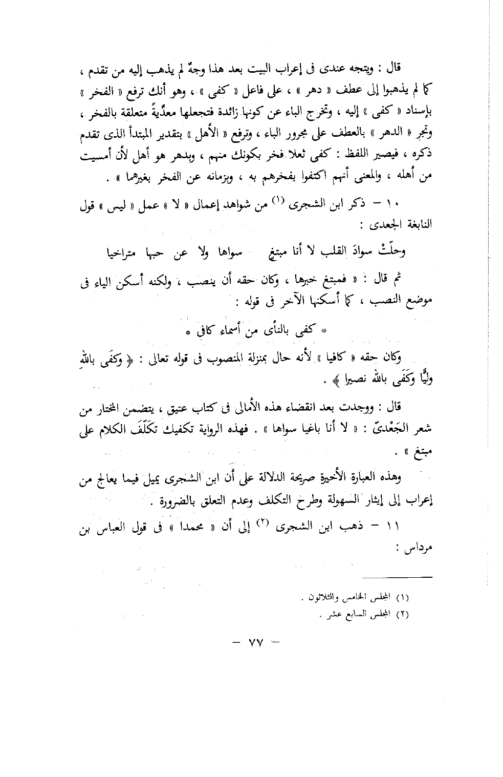 وهذه العبارة الأخيرة صريحة الدلالة على أن ابن الشجرى يميل فيما يعالج من إعراب إلى إيثار السهولة وطرح التكلف وعدم التعلق بالضرورة.