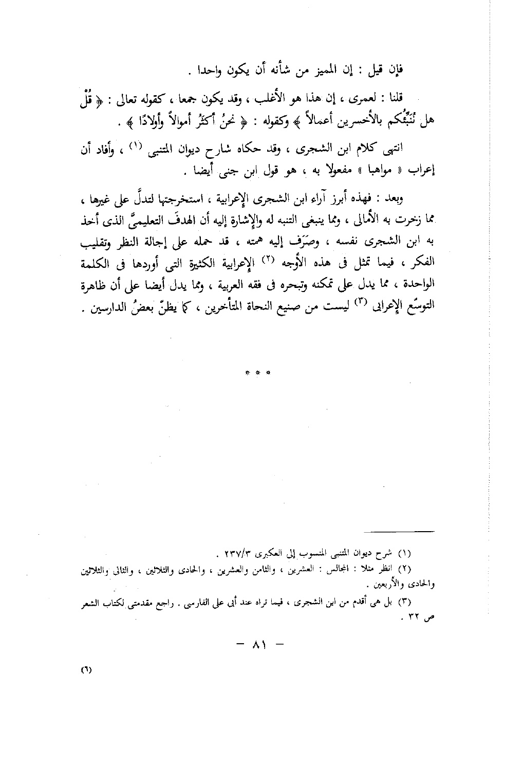 (¬3) بل هى أقدم من ابن الشجرى، فيما تراه عند أبى على الفارسى. راجع مقدمتى لكتاب الشعر ص 32.