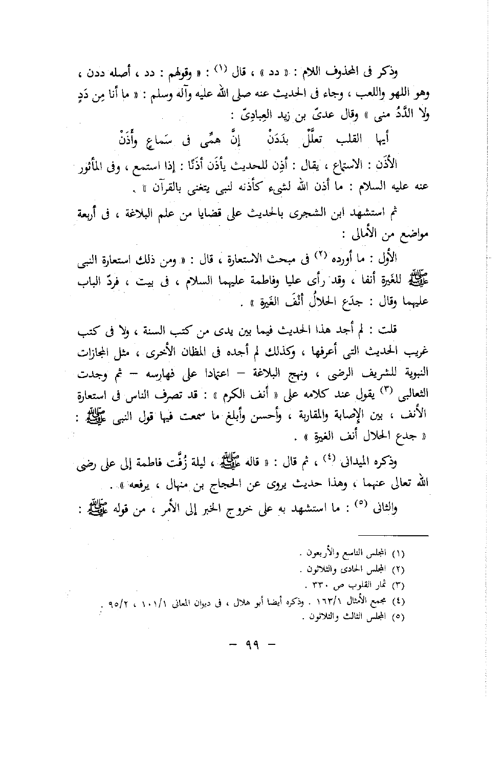 ثم استشهد ابن الشجرى بالحديث على قضايا من علم البلاغة، فى أربعة مواضع من الأمالى: