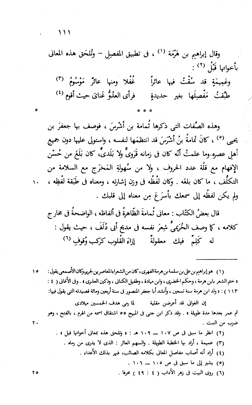 وقال ابرهيم بن هرمة في تطبيق المفصل وتلحق هذه بمعاني اخواتها قبل