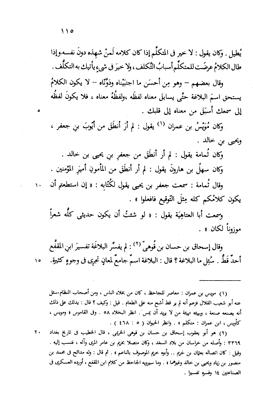 سمعت جعفر بن يحيى يقول لكتابه ان استطعتم ان يكون كلامكم كله مثل التوقيع فافعلوا وسمعت أبا العتاهية يقول لو شئت ان يكون حديثي كله شعرا موزونا لكان وقال اسحق بن حسان بن فوهة لم يفسر البلاغة تفسير ابن المقفع احد قط سئل ما البلاغة قال البلاغة اسم جامع لمعان تجري في وجوه كثيرة@