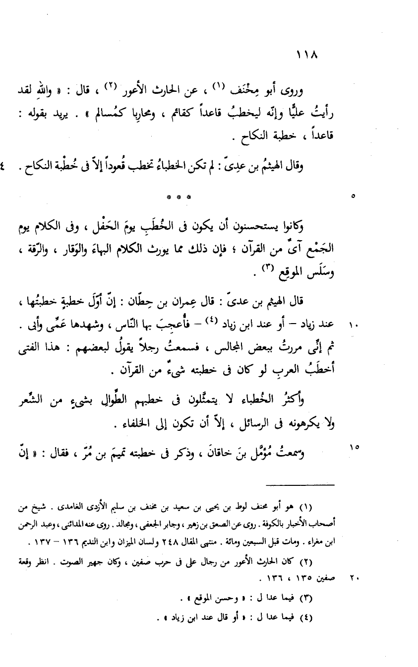 وروى ابو مخنف عن الحارث الاعور قال والله لقد رأيت عليا وانه لخطب قاعدا كقائم ومحاربا كمسالم يريد بقوله قاعدا خطبة النكاح