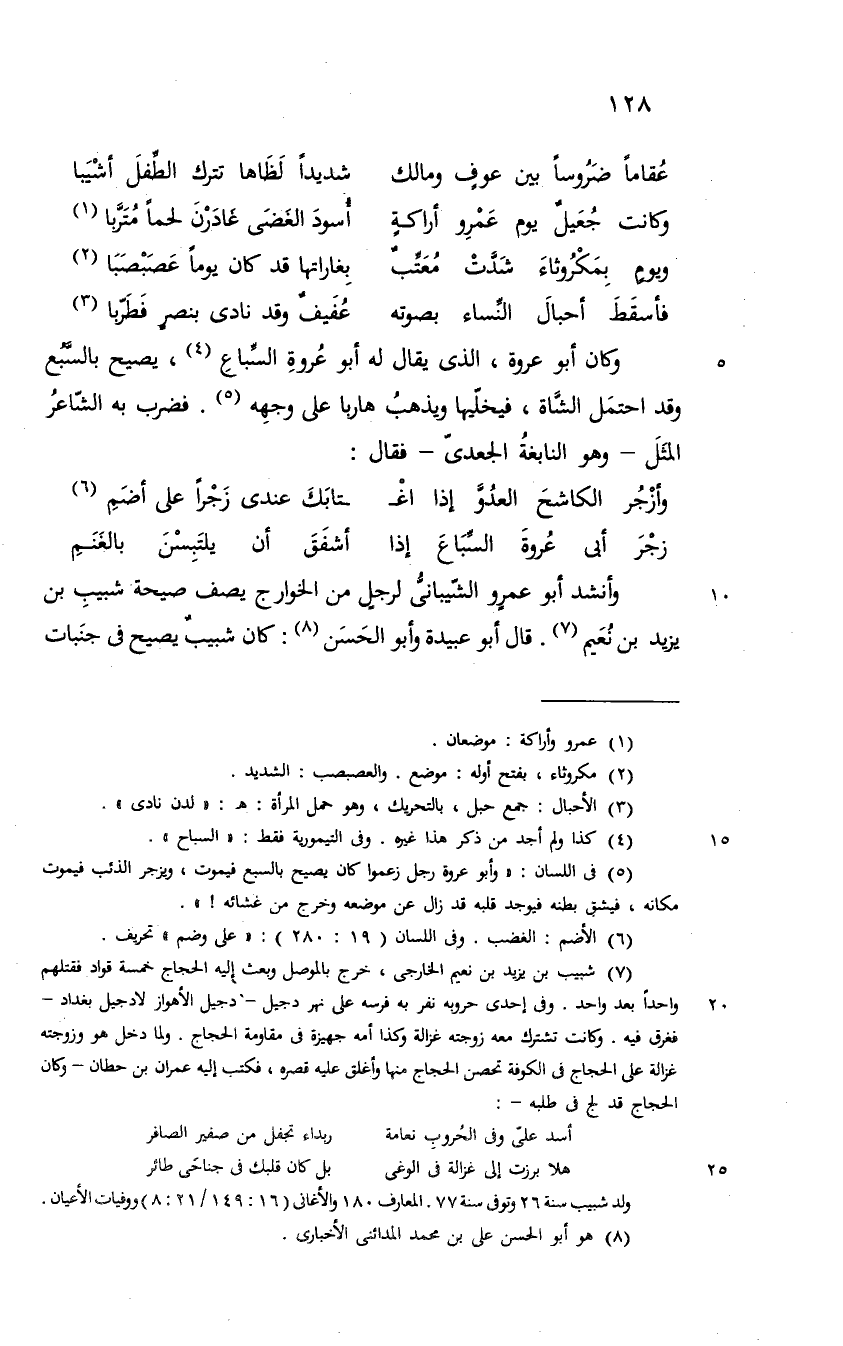 ( عقاما ضروسا بين عوف ومالك ... شديدا لظاها تترك الطفل أشيبا )