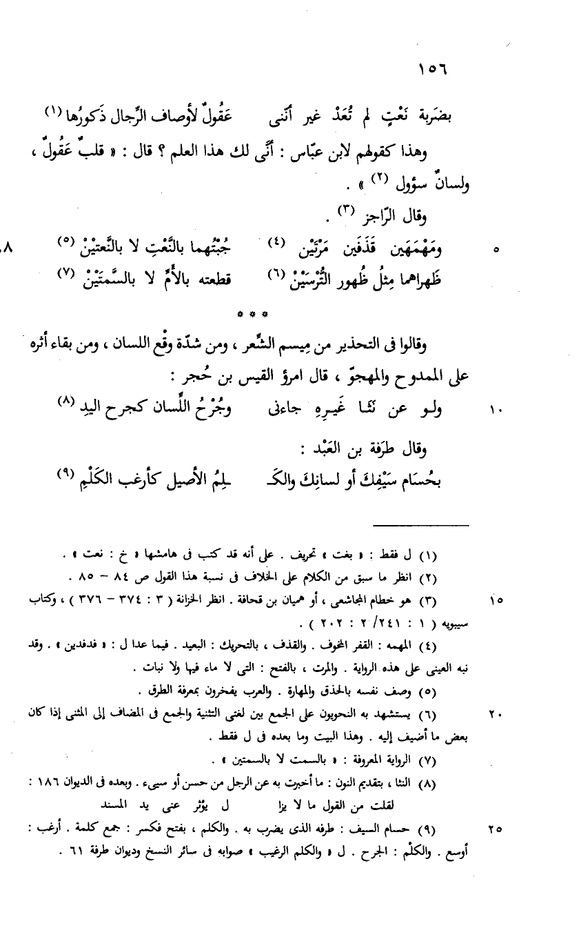 ( بضربة نعت لم تعد غير أنني ... عقول لأوصاف الرجال ذكورها )