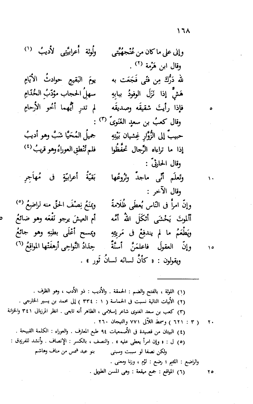 ( وإني على ما كان من عنجهيتي ... ولوثة اعرابيتي لأديب )