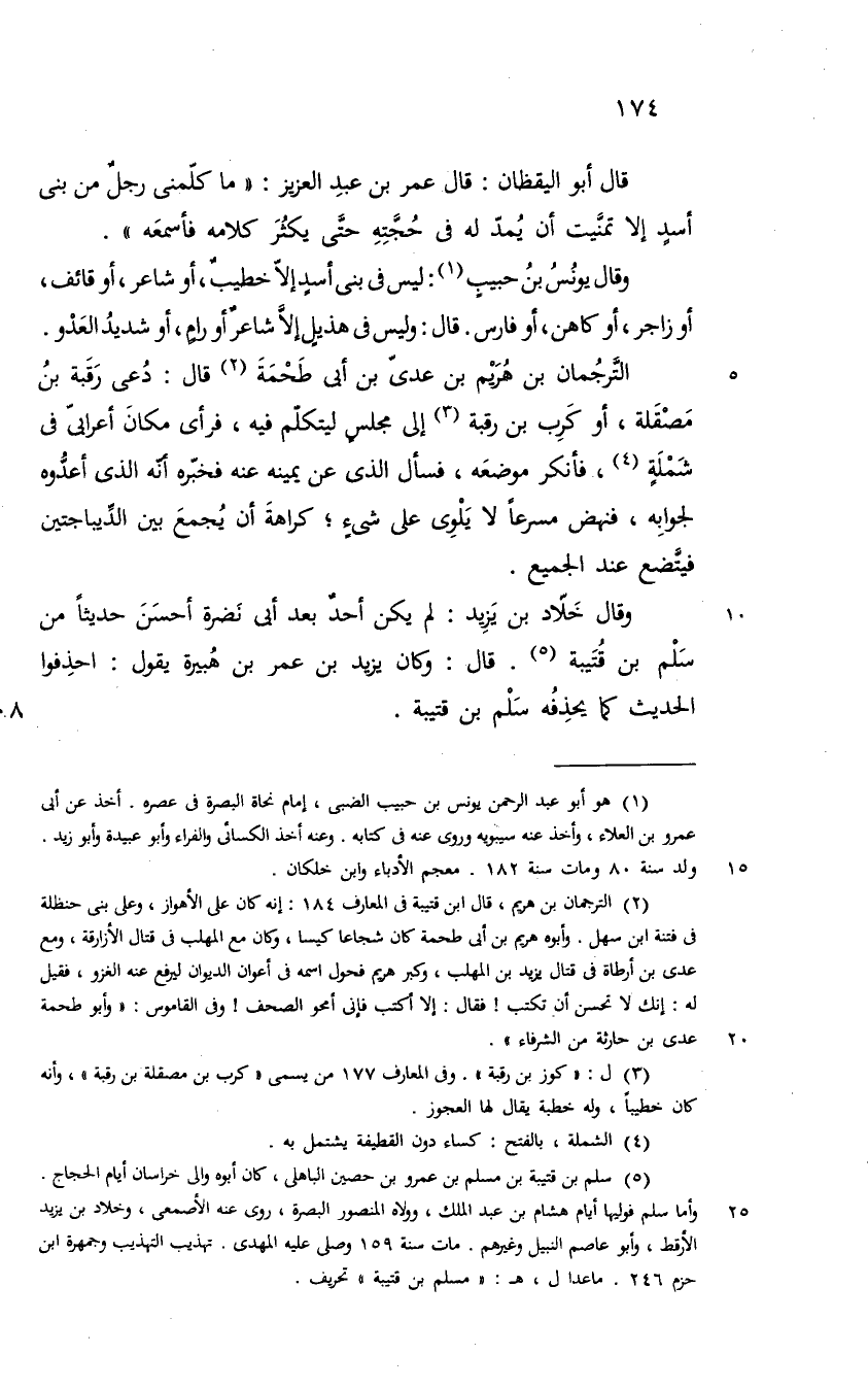 وقال يونس ليس في بني أسد الا خطيب او شاعر او قائف او زاجر اوكاهن او فارس قال وليس في هذيل الا شاعر او رام او شديد العدو