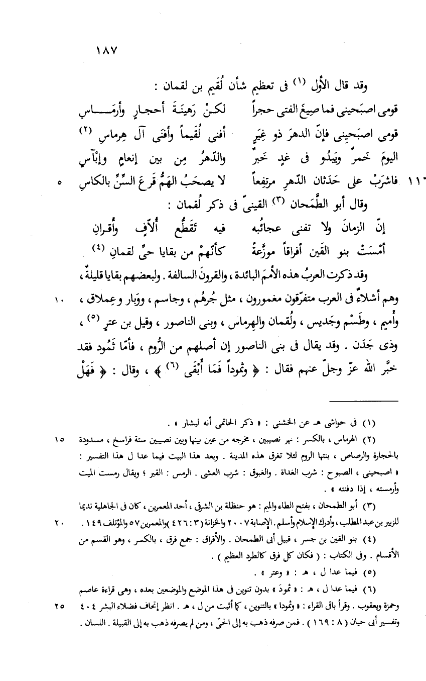 وقد قال الاول في تعظيم شأن لقيم بن لقمان