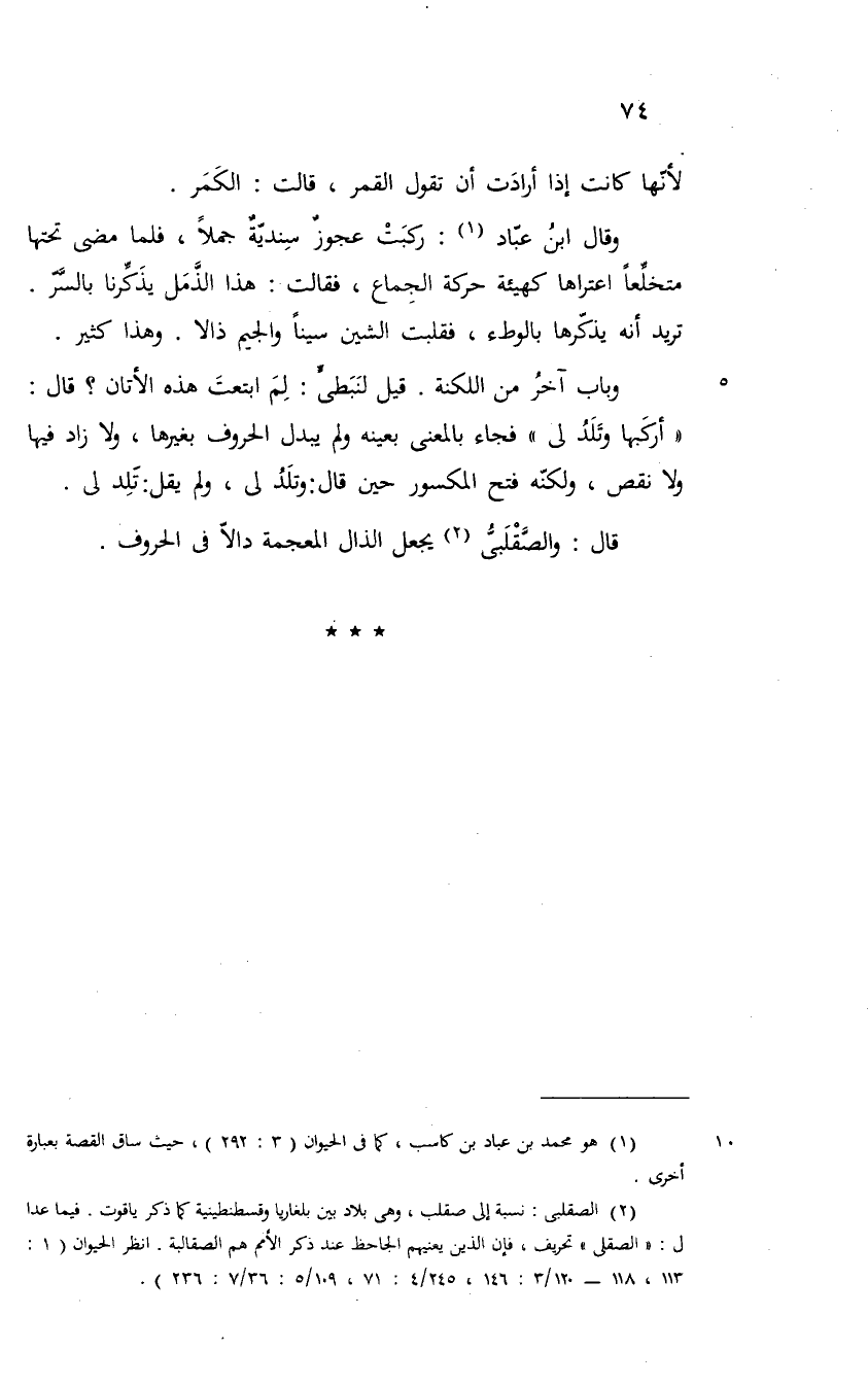 وباب اخر من اللكنة كما قيل للنبطي لم ابتعت هذه الأتان قال أركبها وتلد لي فقد جاء بالمعنى بعينه ولم يبدل الحروف بغيرها ولا زاد فيها ولا نقص ولكنه فتح المكسور حين قال تلد لي ولم يقل تلد لي والصقلي يجعل الذال المعجمة دالا في الحروف@