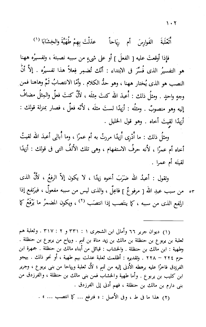أَثَعْلَبةَ الفَوارِسَ أم رِيَاحاً ... عدَلْتَ بِهِمْ طُهَيَّةَ والخِشَابَا
