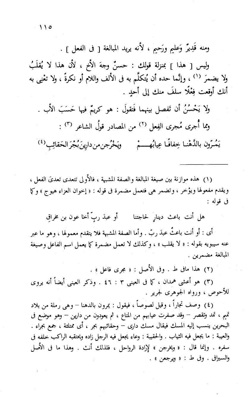 ومنه قَدِيرٌ وَعليم ورَحيم، لأنه يريد المبالغة " فى الفعل ".