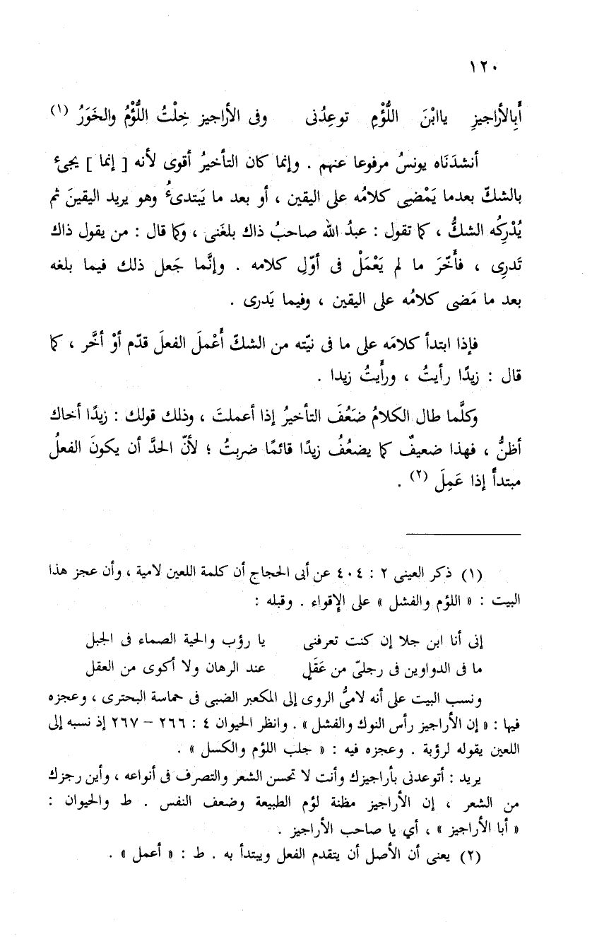فإذا ابتدأ كلامَه على ما فى نيّته من الشكَ أَعْملَ الفعلَ قدّم أوْ أخَّر، كما قال: زيداً رأيتُ، ورأَيتُ زيدا.