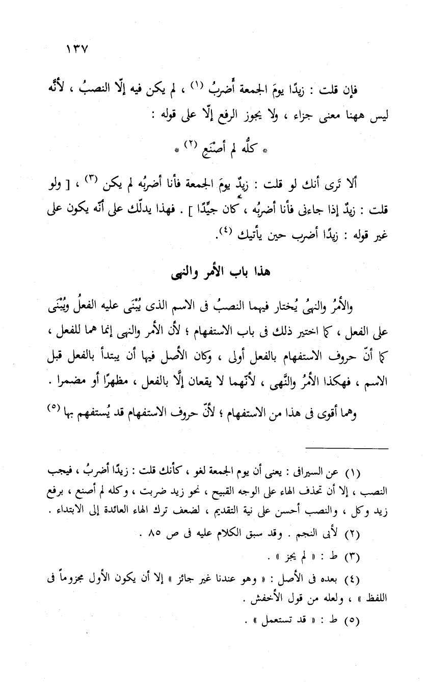 والأمرُ والنهىُ يُختار فيهما النصبُ فى الاسم الذى يُبْنَى عليه الفعلُ ويُبْنَى على الفعل، كما اختير ذلك فى باب الاستفهام؛ لأن الأمر والنهى إنما هما للفعل، كما أنّ حروف الاستفهام بالفعل أولى، وكان الأصل فيها أن يبتدأ بالفعل قبل الاسم، فهكذا الأمرُ والنَّهى، لأنهما لا يقعان إلاَّ بالفعل، مظهراً أو مضمرا.