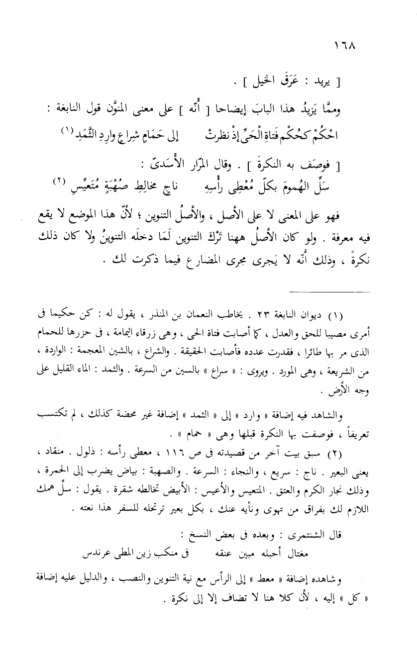 وممَّا يَزيدُ هذا البابَ إيضاحا " أَنّه " على معنى المنَّون قول النابغة: