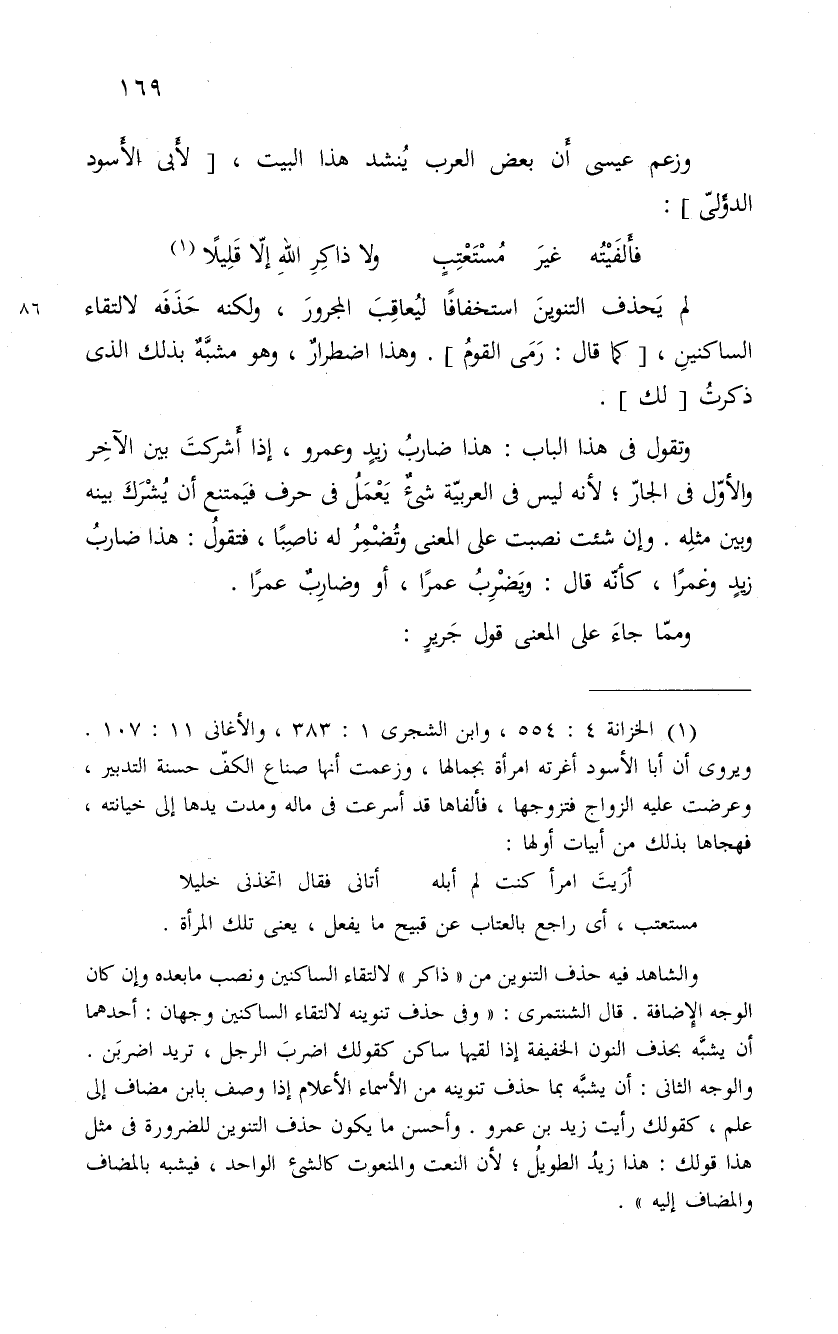 وزعم عيسى أَن بعض العرب يُنشد هذا البيت، " لأبي الأسود الدؤلي ":