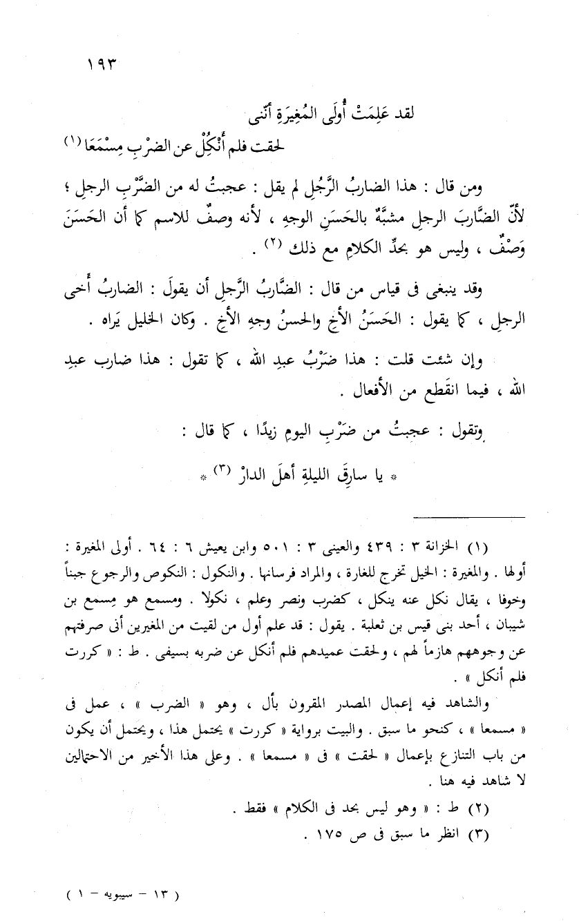 وقد ينبغى فى قياس من قال: الضَّاربُ الرَّجلِ أن يقولَ: الضاربُ أََخى الرجلِ، كما يقول: الحَسَنُ الأخِ والحسنُ وجهِ الأخِ. وكان الخليل يَراه.