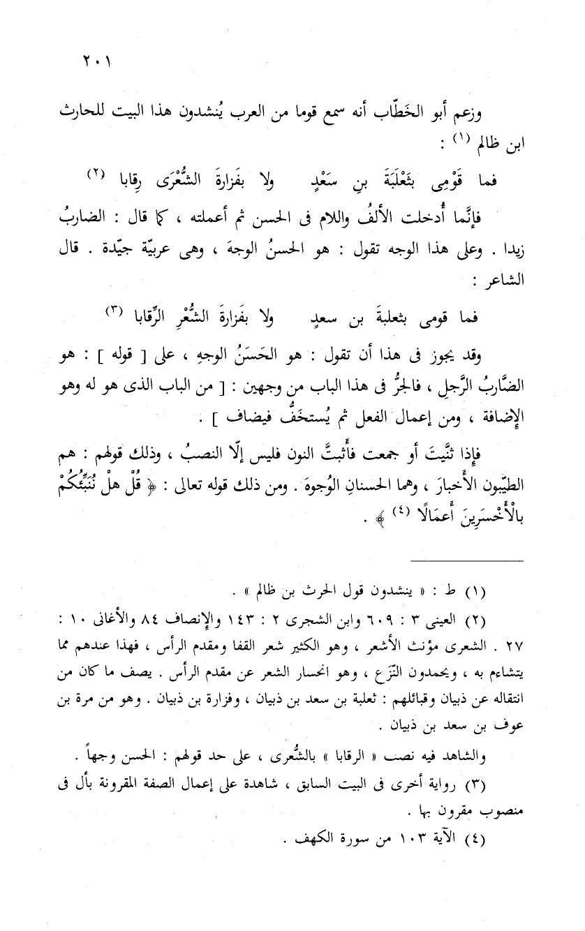وزعم أبو الخَطّاب أنه سمع قوما من العرب يُنشدون هذا البيت للحارث ابن ظالم: