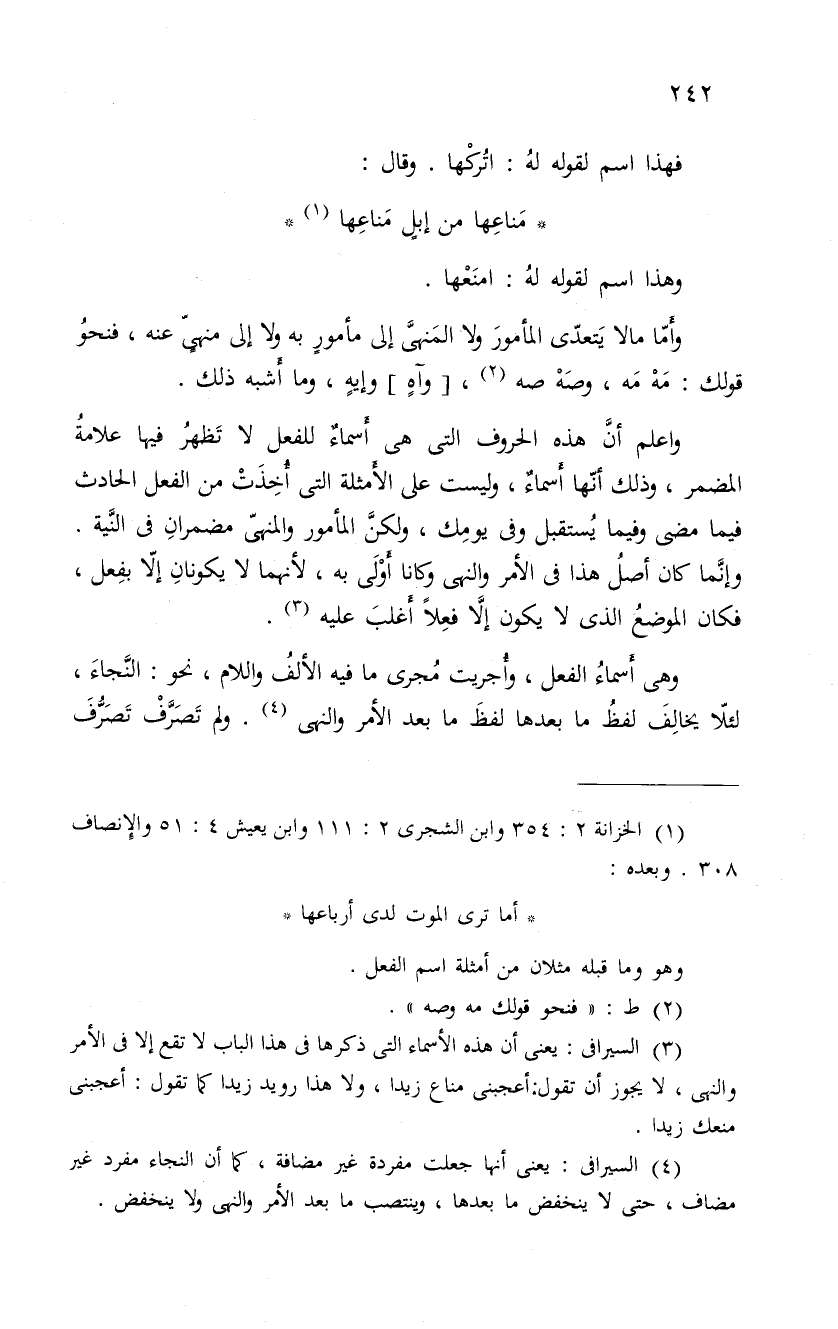 وهى أَسماءُ الفعل، وأُجريت مُجرى ما فيه الألفُ واللام، نحو: النَّجاءَ، لئلاّ يخالِفَ لفظُ ما بعدها لفظَ ما بعد الأمر والنهى. ولم تَصَرَّف تَصَرُّفَ