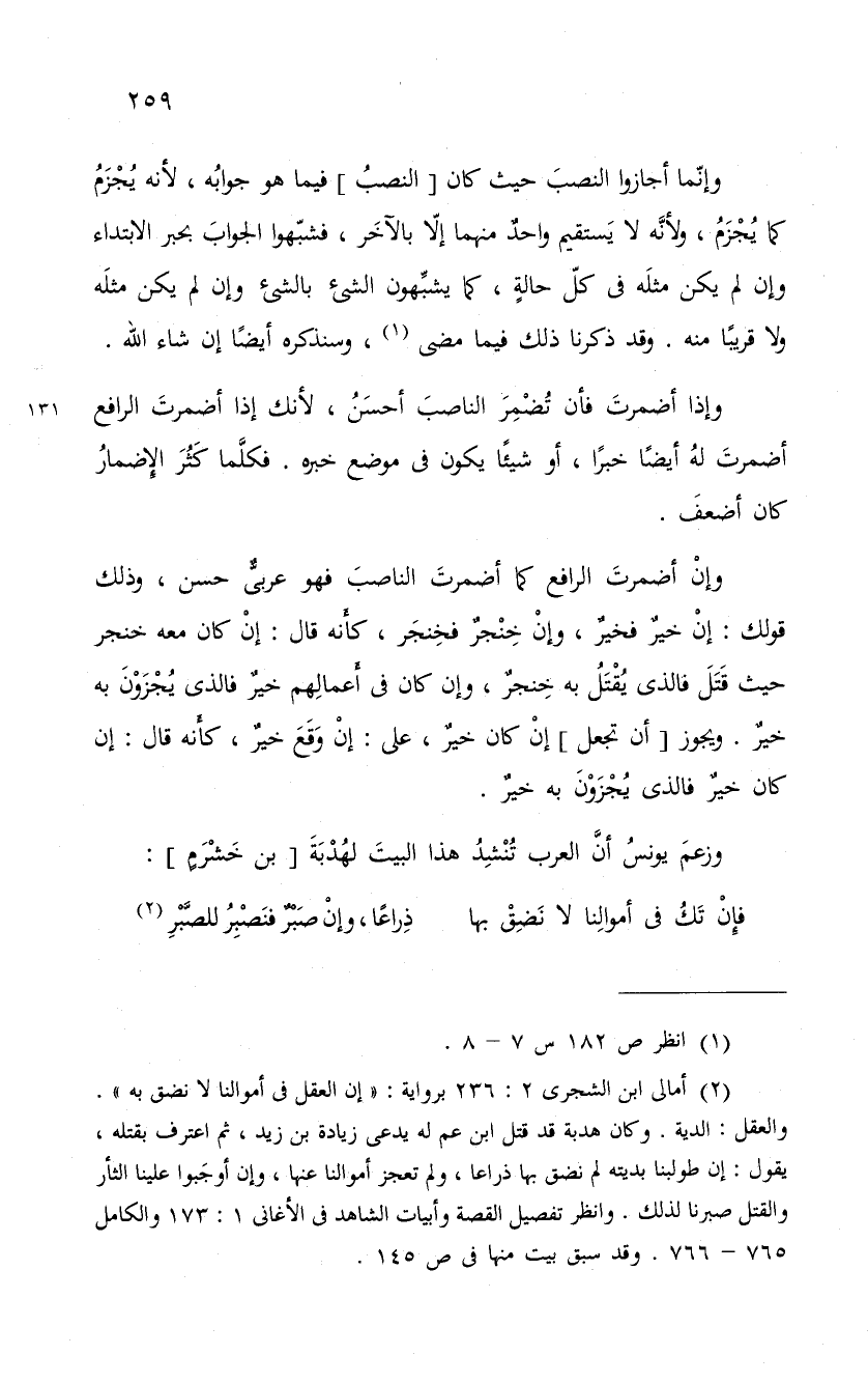 وزعَم يونسُ أنَّ العرب تُنْشِدُ هذا البيتَ لهُدْبَةَ بن خَشْرَمٍ: