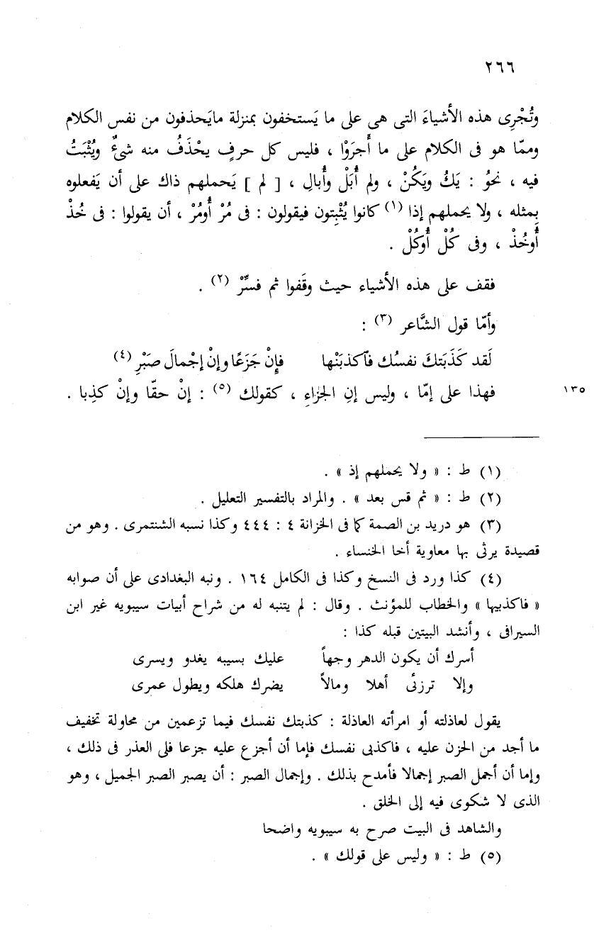 وتُجْرِى هذه الأشياءَ التى هى على ما يَستخفون بمنزلة ما يَحذفون من نفس الكلام ومما هو في الكلام على ما أَجرَوْا، فليس كل حرفٍ يحذف منه شيء ويُثْبَتُ فيه، نحوُ: يَكُ ويَكُنْ، ولم أُبَلْ وأُبالِ، لم يَحملهم ذاك على أن يَفعلوه بِمثله، ولا يحملهم إذا كانوا يُثْبِتون فيقولون: في مر أومر، أن يقولوا: فى خُذْ أُوخُذْ، وفى كُلْ أوكل.