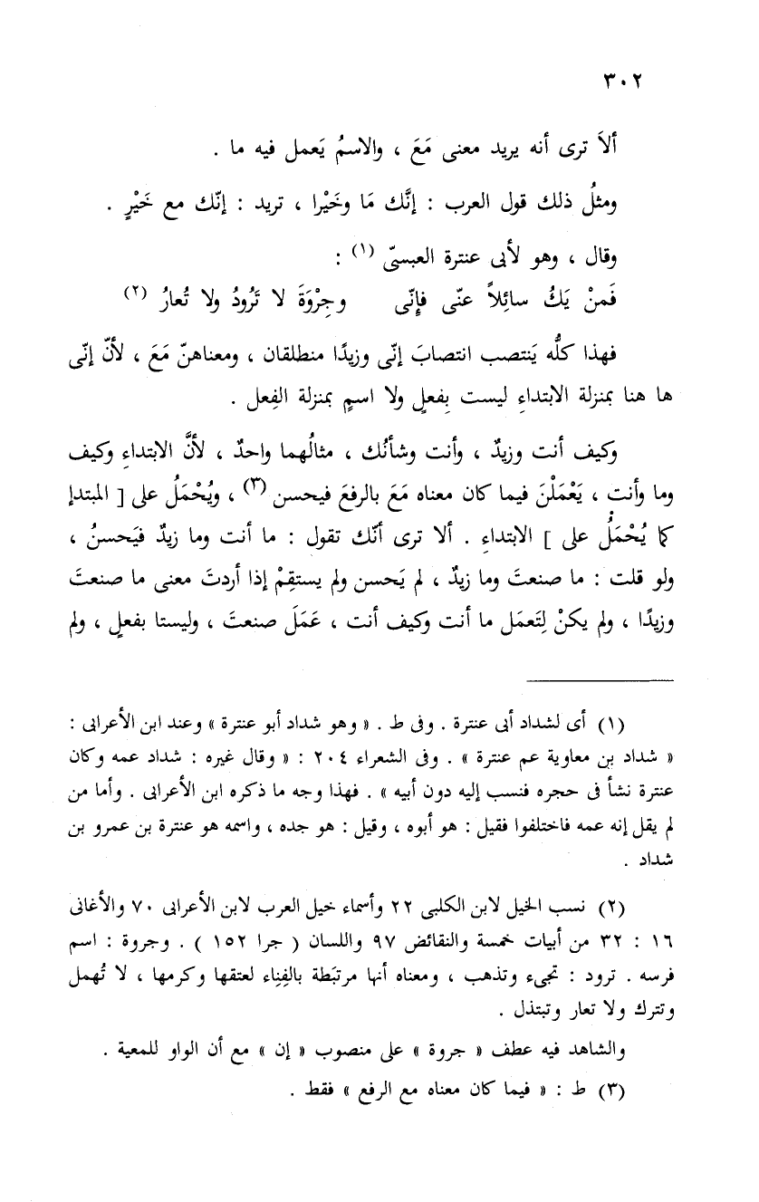 ومثلُ ذلك قول العرب: إنَّك مَا وخَيْرا، تريد: إنّك مع خَيْرٍ. وقال، وهو لأبى عنترة العبسىّ: