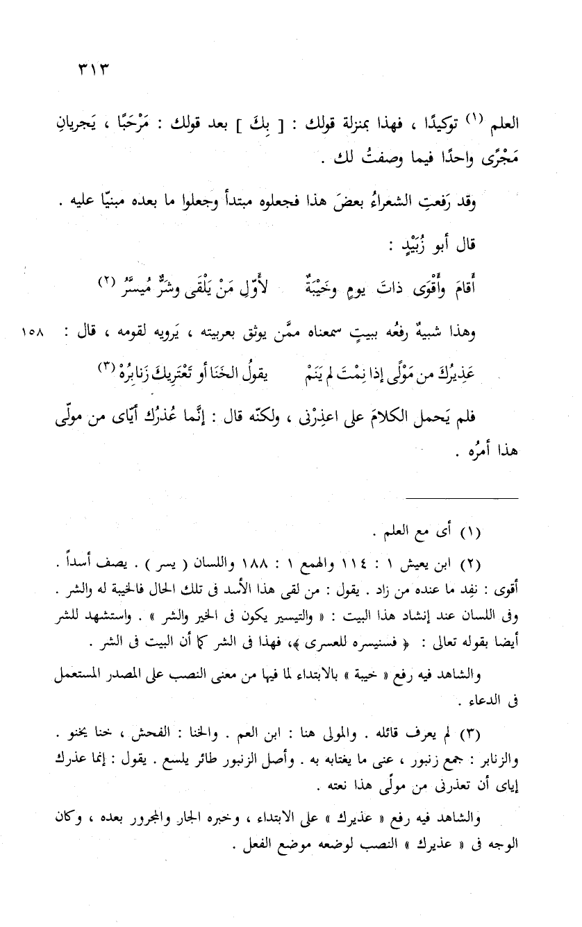 العلم توكيداً، فهذا بمنزلة قولك: " بِكَ " بعد قولك: مَرْحَباً، يَجريانِ مَجْرًى واحداً فيما وصفتُ لك.