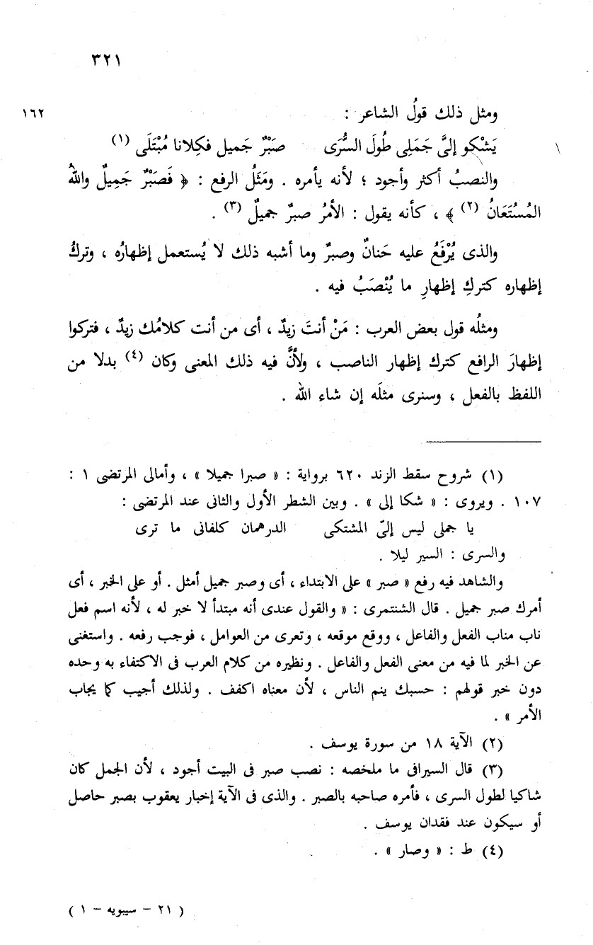 يَشْكو إلىَّ جَمَلِى طُولَ السُّرَى ... صَبرٌ جَميل فكِلانا مُبْتَلَى