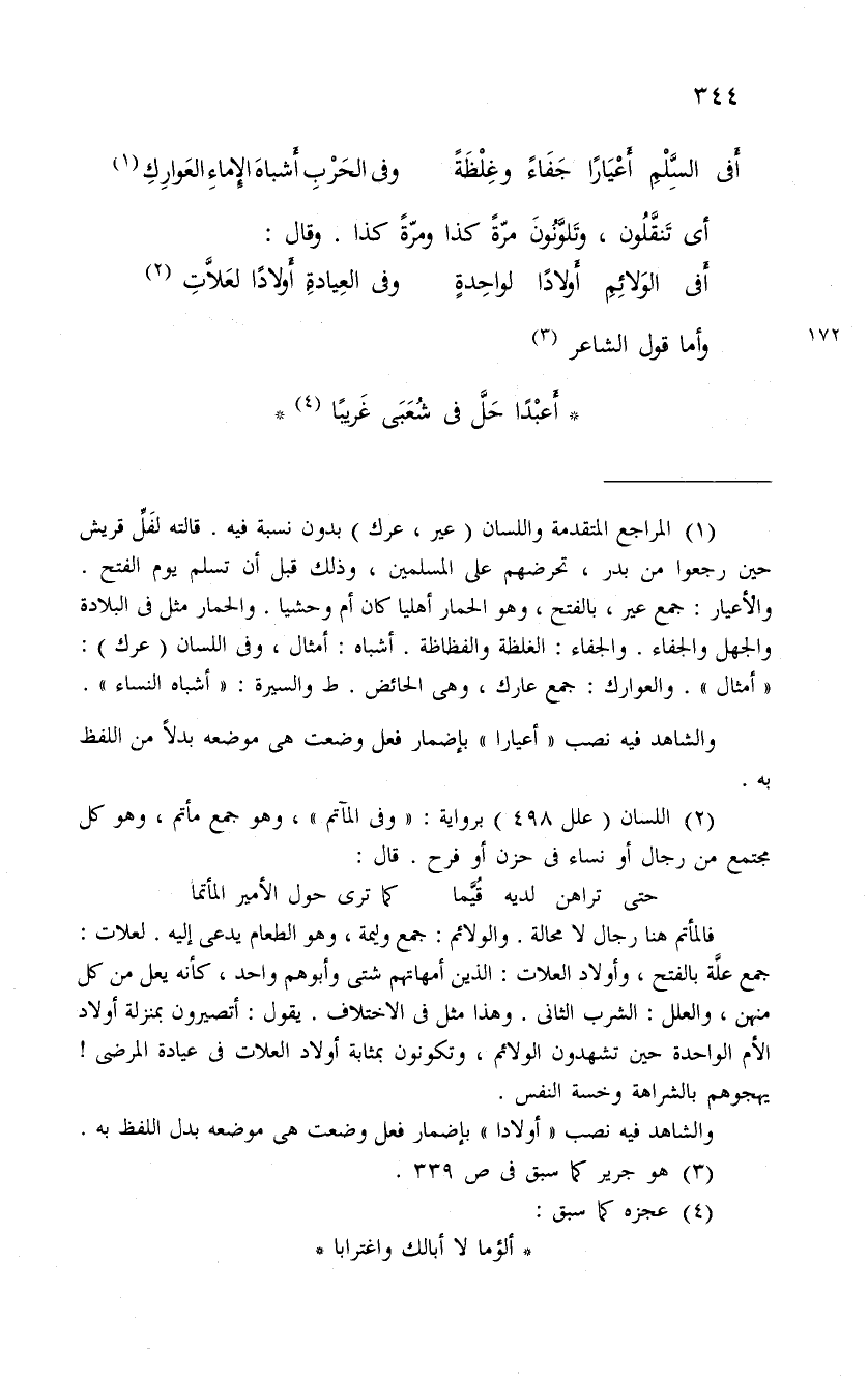 أَفى السَّلْمِ أَعْيَاراً جَفَاءً وغِلْظَةً ... وفى الحَرْبِ أَشباهَ الإِماءِ العَوارِكِ