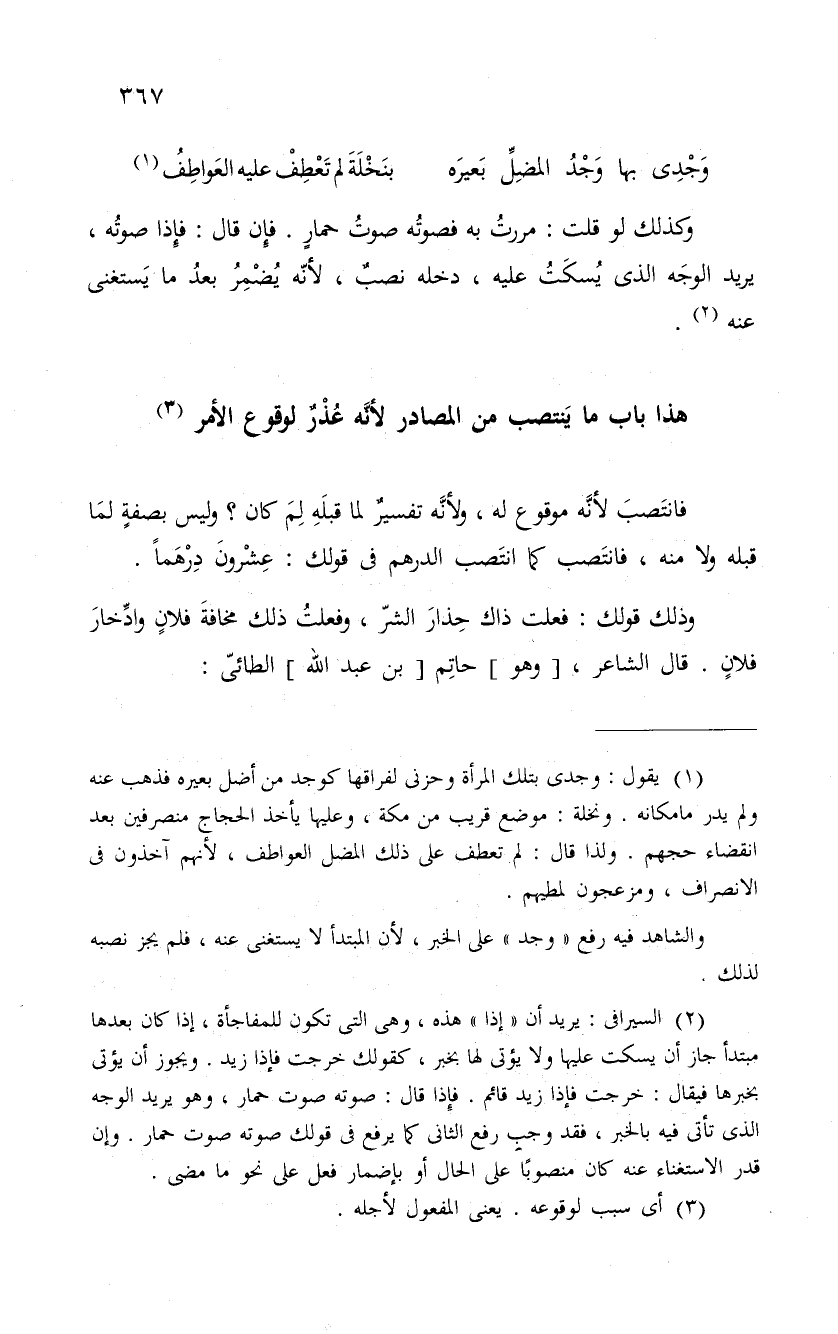 وذلك قولك: فعلت ذاك حذار الشر، وفعلت ذاك مخافة فلان وادخار فلان. قال الشاعر، هو " حاتِم " بن عبد الله " الطائىّ: