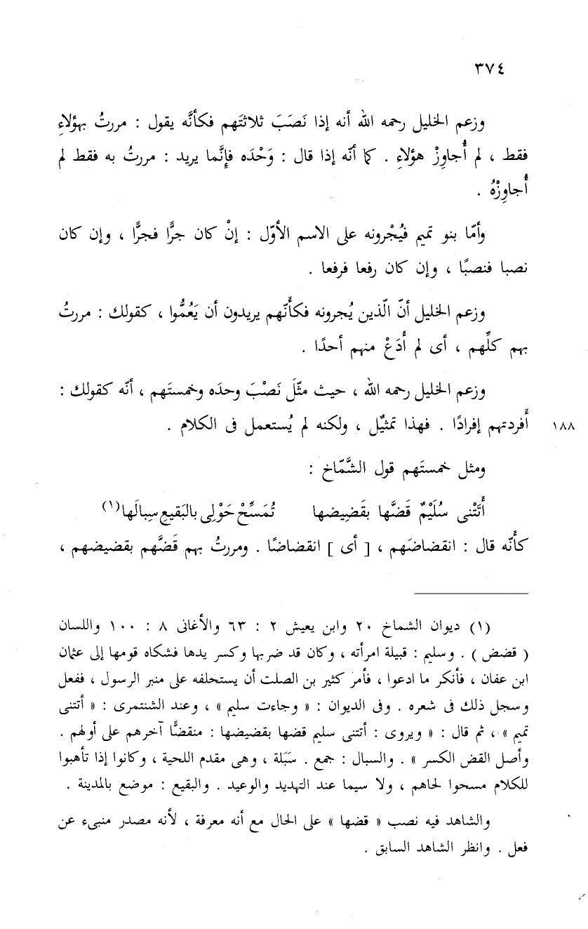 وزعم الخليل أنّ الّذين يُجرونه فكأَنّهم يريدون أن يَعُمُّوا، كقولك: مررتُ بهم كلَّهم، أى لم أَدَعْ منهم أحداً.